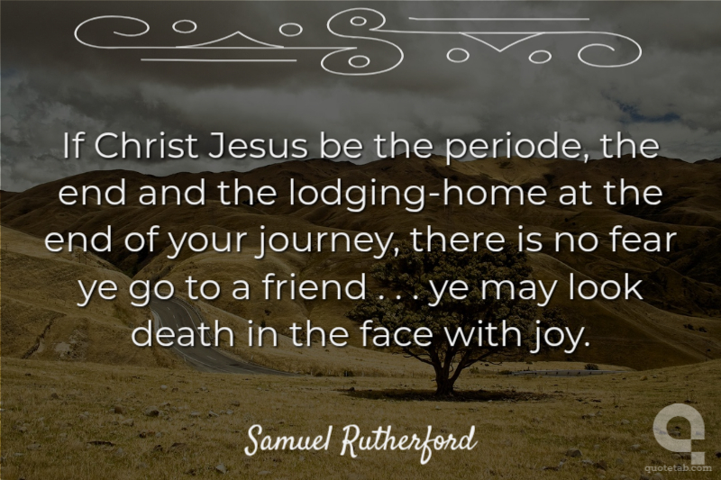 If Christ Jesus be the periode, the end and the lodging-home at the end of your journey, there is no fear ye go to a friend . . . ye may look death in the face with joy.