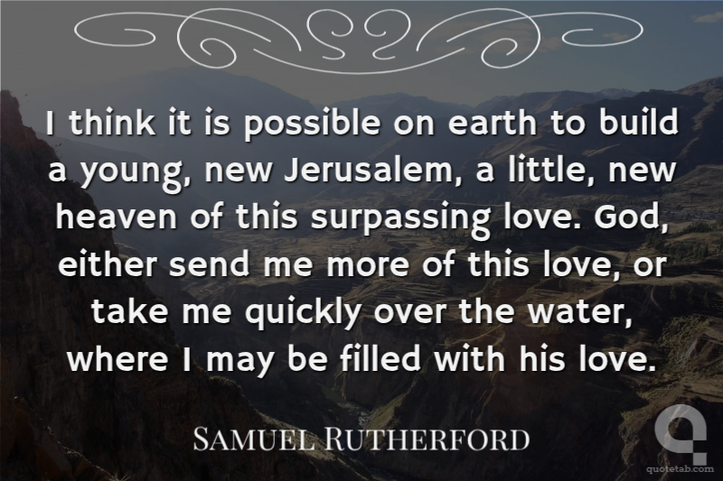 I think it is possible on earth to build a young, new Jerusalem, a little, new heaven of this surpassing love. God, either send me more of this love, or take me quickly over the water, where I may be filled with his love.