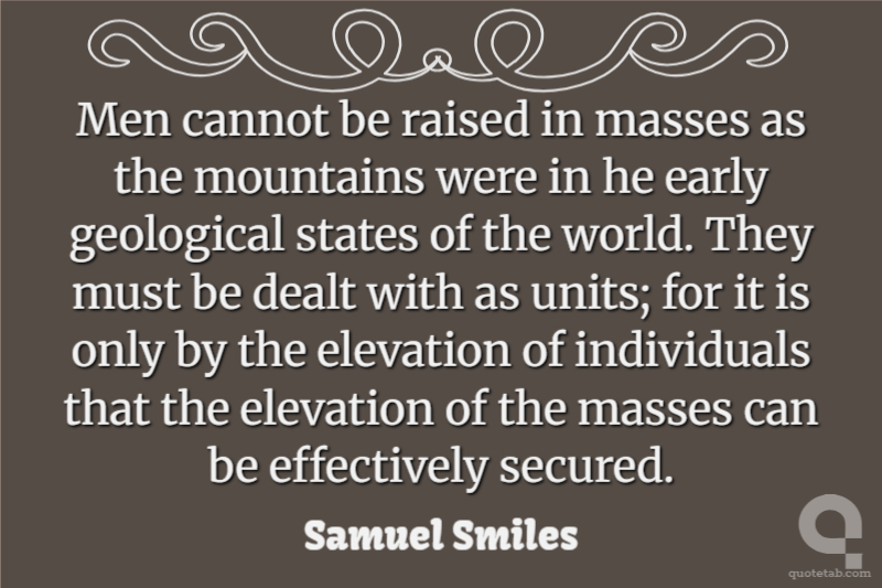 Men cannot be raised in masses as the mountains were in he early geological states of the world. They must be dealt with as units; for it is only by the elevation of individuals that the elevation of the masses can be effectively secured.
