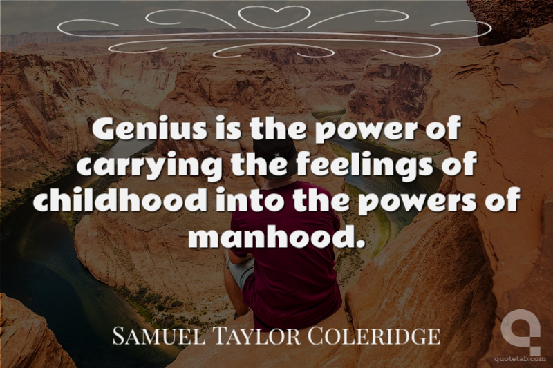 Genius is the power of carrying the feelings of childhood into the powers of manhood.