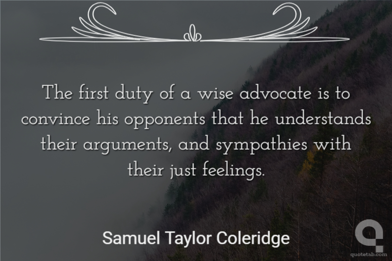 The first duty of a wise advocate is to convince his opponents that he understands their arguments, and sympathies with their just feelings.