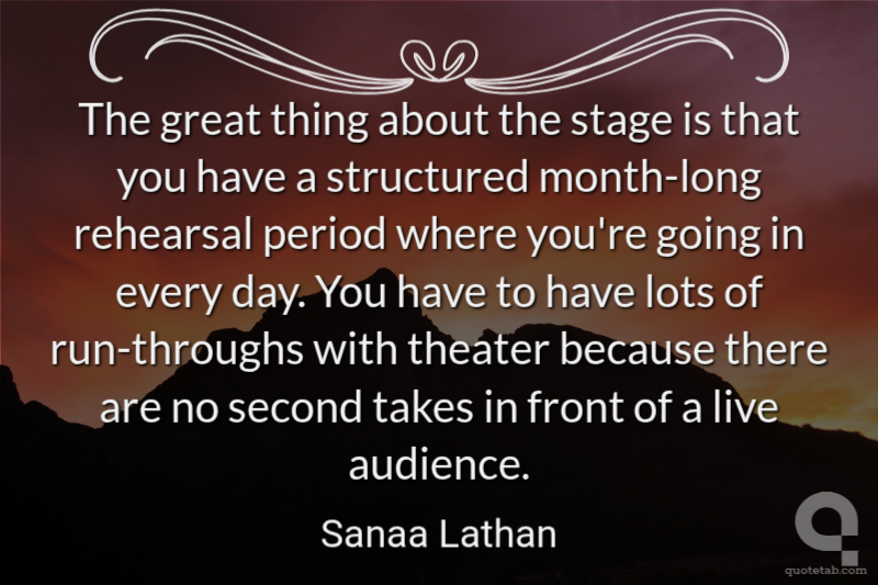 The great thing about the stage is that you have a structured month-long rehearsal period where you're going in every day. You have to have lots of run-throughs with theater because there are no second takes in front of a live audience.