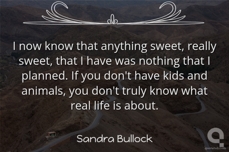 I now know that anything sweet, really sweet, that I have was nothing that I planned. If you don't have kids and animals, you don't truly know what real life is about.
