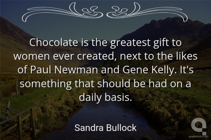 Chocolate is the greatest gift to women ever created, next to the likes of Paul Newman and Gene Kelly. It's something that should be had on a daily basis.