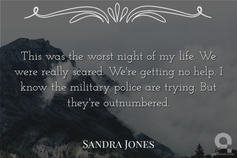 This was the worst night of my life. We were really scared. We're getting no help. I know the military police are trying. But they're outnumbered.