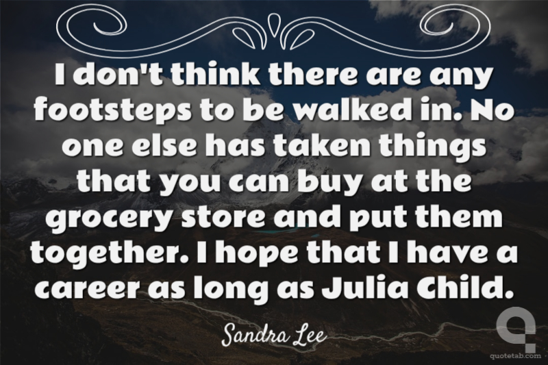 I don't think there are any footsteps to be walked in. No one else has taken things that you can buy at the grocery store and put them together. I hope that I have a career as long as Julia Child.