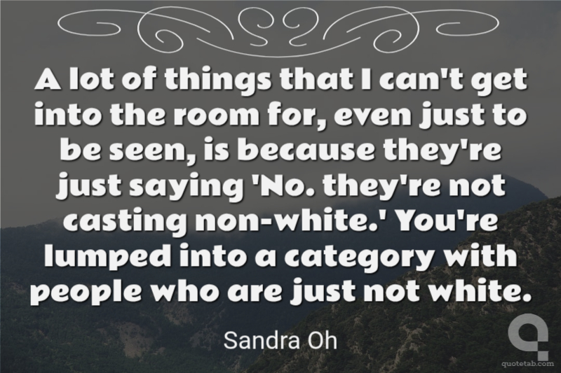 A lot of things that I can't get into the room for, even just to be seen, is because they're just saying 'No. they're not casting non-white.' You're lumped into a category with people who are just not white.