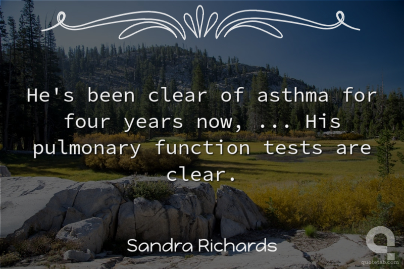 He's been clear of asthma for four years now, ... His pulmonary function tests are clear.