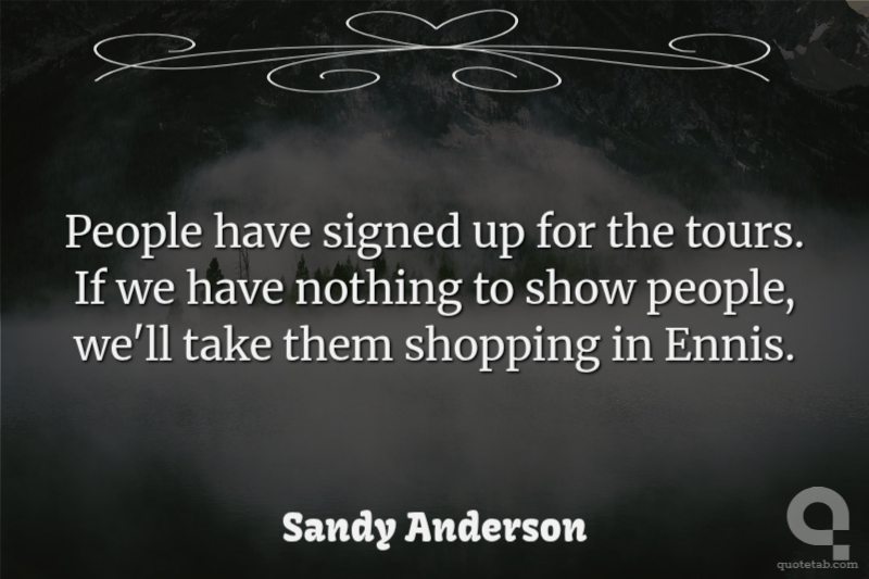 People have signed up for the tours. If we have nothing to show people, we'll take them shopping in Ennis.