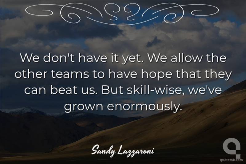 We don't have it yet. We allow the other teams to have hope that they can beat us. But skill-wise, we've grown enormously.
