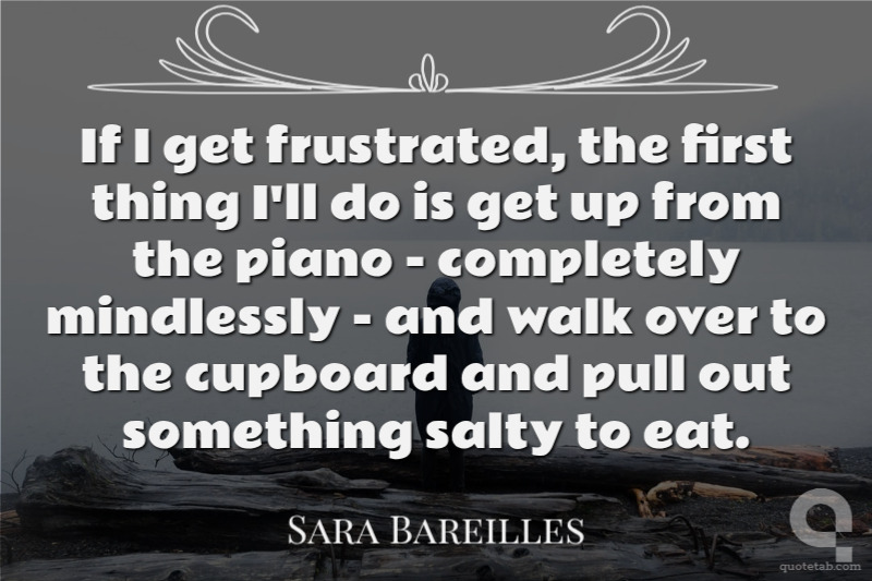 If I get frustrated, the first thing I'll do is get up from the piano - completely mindlessly - and walk over to the cupboard and pull out something salty to eat.