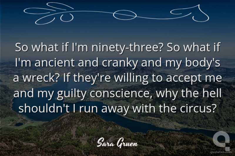 So what if I'm ninety-three? So what if I'm ancient and cranky and my body's a wreck? If they're willing to accept me and my guilty conscience, why the hell shouldn't I run away with the circus?