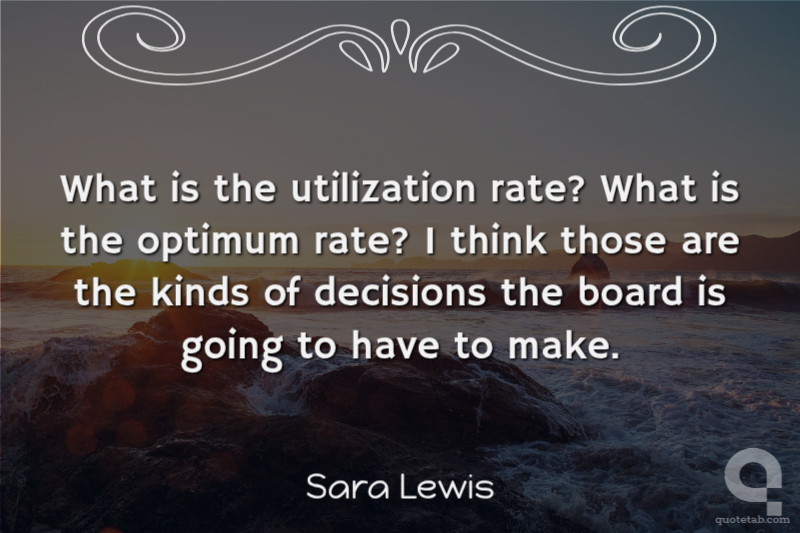 What is the utilization rate? What is the optimum rate? I think those are the kinds of decisions the board is going to have to make.