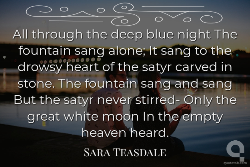 All through the deep blue night The fountain sang alone; It sang to the drowsy heart of the satyr carved in stone. The fountain sang and sang But the satyr never stirred- Only the great white moon In the empty heaven heard.