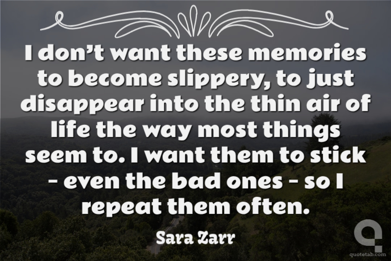 I don’t want these memories to become slippery, to just disappear into the thin air of life the way most things seem to. I want them to stick – even the bad ones – so I repeat them often.