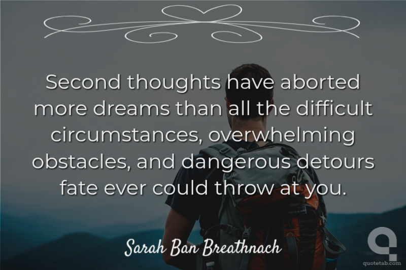 Second thoughts have aborted more dreams than all the difficult circumstances, overwhelming obstacles, and dangerous detours fate ever could throw at you.