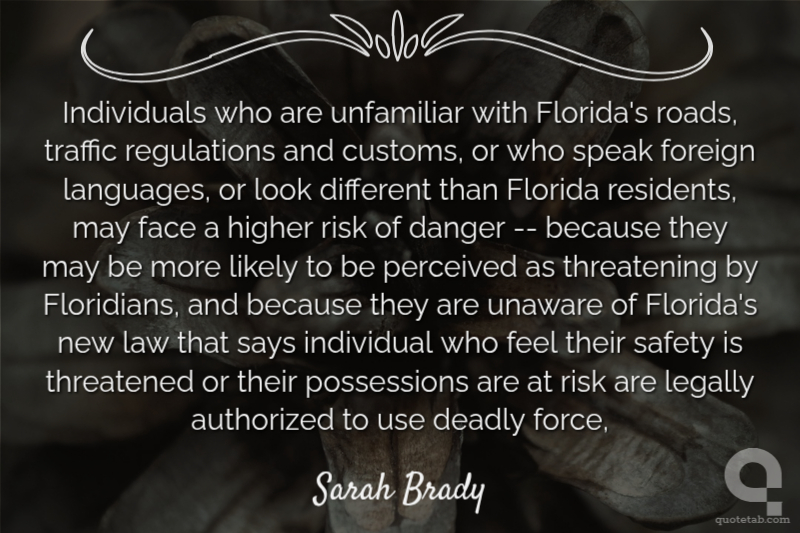 authorized danger deadly face florida foreign higher individual law legally likely perceived risk safety says speak threatened traffic unaware unfamiliar