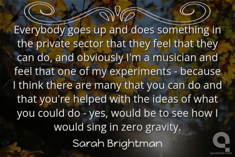 Everybody goes up and does something in the private sector that they feel that they can do, and obviously I'm a musician and feel that one of my experiments - because I think there are many that you can do and that you're helped with the ideas of what you could do - yes, would be to see how I would sing in zero gravity.