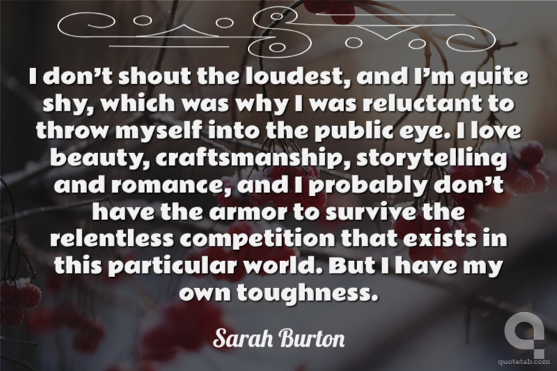 I don’t shout the loudest, and I’m quite shy, which was why I was reluctant to throw myself into the public eye. I love beauty, craftsmanship, storytelling and romance, and I probably don’t have the armor to survive the relentless competition that exists in this particular world. But I have my own toughness.