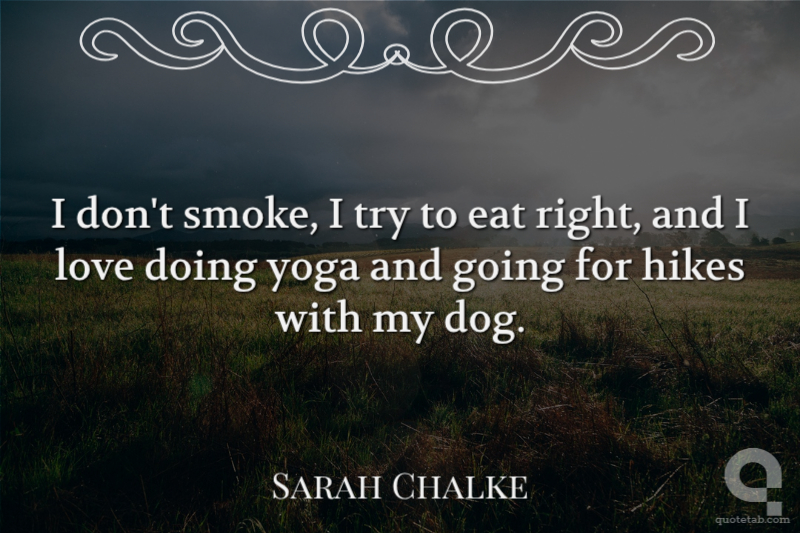 I don't smoke, I try to eat right, and I love doing yoga and going for hikes with my dog.