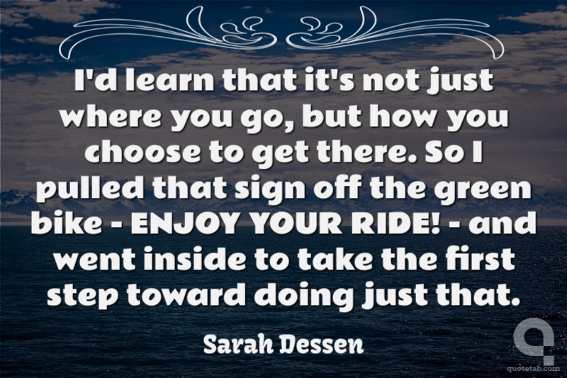 I'd learn that it's not just where you go, but how you choose to get there. So I pulled that sign off the green bike - ENJOY YOUR RIDE! - and went inside to take the first step toward doing just that.