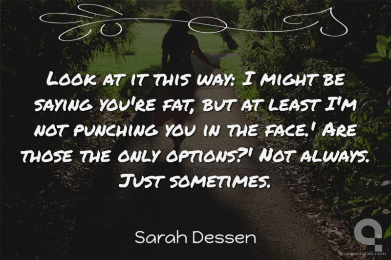 Look at it this way: I might be saying you're fat, but at least I'm not punching you in the face.' Are those the only options?' Not always. Just sometimes.