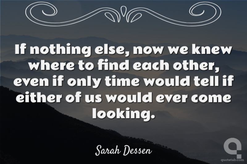 If nothing else, now we knew where to find each other, even if only time would tell if either of us would ever come looking.