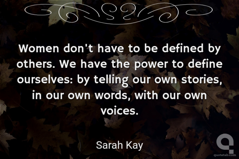 Women don't have to be defined by others. We have the power to define ourselves: by telling our own stories, in our own words, with our own voices.