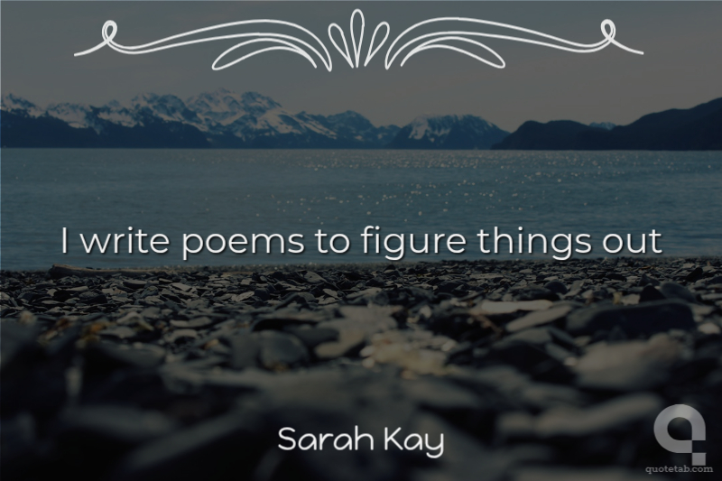 I write poetry to figure things out. Any time I'm trying to wrap my head around something, poetry is like a puzzle-solving strategy for me.