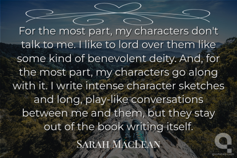 For the most part, my characters don't talk to me. I like to lord over them like some kind of benevolent deity. And, for the most part, my characters go along with it. I write intense character sketches and long, play-like conversations between me and them, but they stay out of the book writing itself.