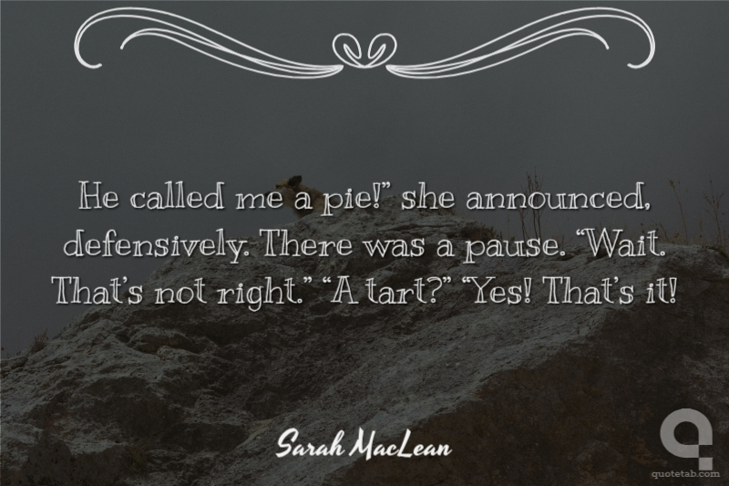 He called me a pie!” she announced, defensively. There was a pause. “Wait. That’s not right.” “A tart?” “Yes! That’s it!