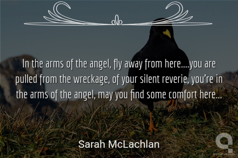 In the arms of the angel, fly away from here....you are pulled from the wreckage, of your silent reverie, you're in the arms of the angel, may you find some comfort here...