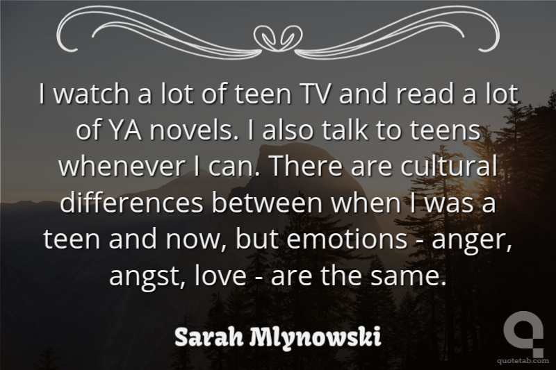 I watch a lot of teen TV and read a lot of YA novels. I also talk to teens whenever I can. There are cultural differences between when I was a teen and now, but emotions - anger, angst, love - are the same.