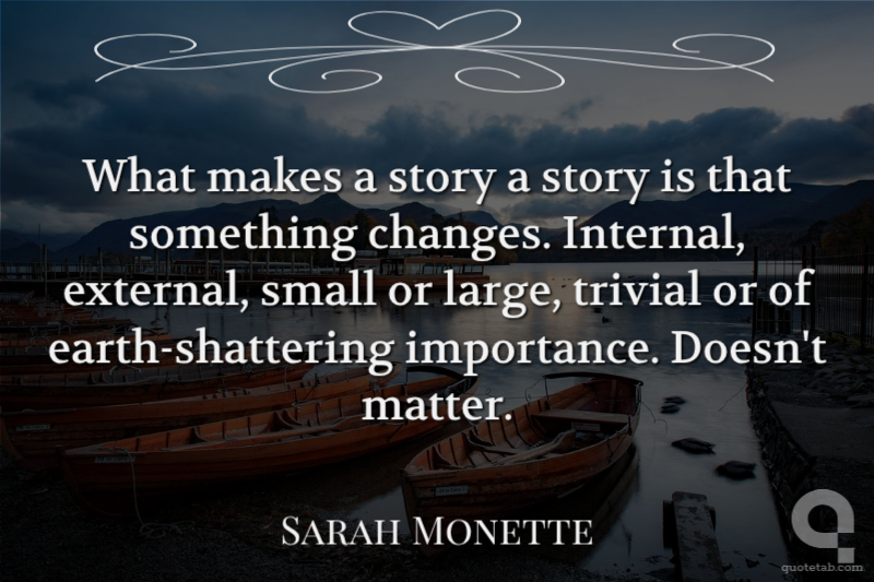 What makes a story a story is that something changes. Internal, external, small or large, trivial or of earth-shattering importance. Doesn't matter.