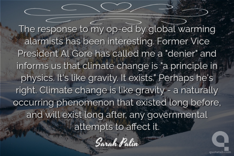 The response to my op-ed by global warming alarmists has been interesting. Former Vice President Al Gore has called me a "denier" and informs us that climate change is "a principle in physics. It's like gravity. It exists." Perhaps he's right. Climate change is like gravity - a naturally occurring phenomenon that existed long before, and will exist long after, any governmental attempts to affect it.