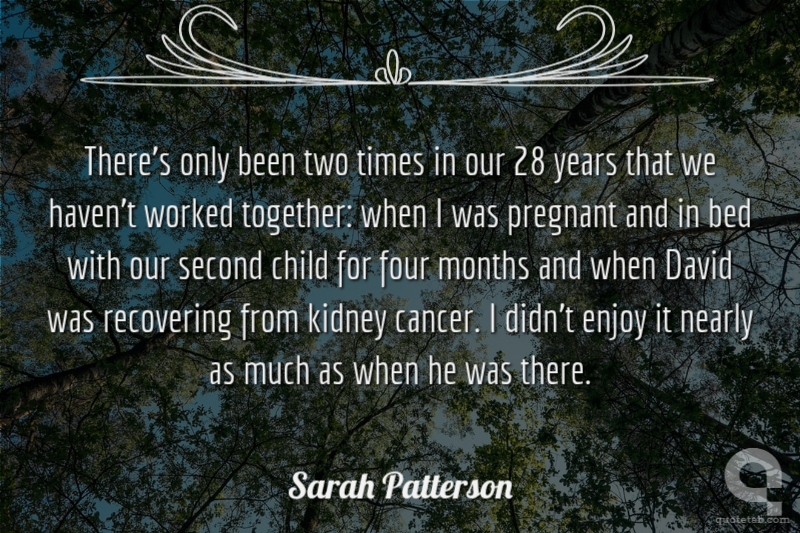There's only been two times in our 28 years that we haven't worked together: when I was pregnant and in bed with our second child for four months and when David was recovering from kidney cancer. I didn't enjoy it nearly as much as when he was there.