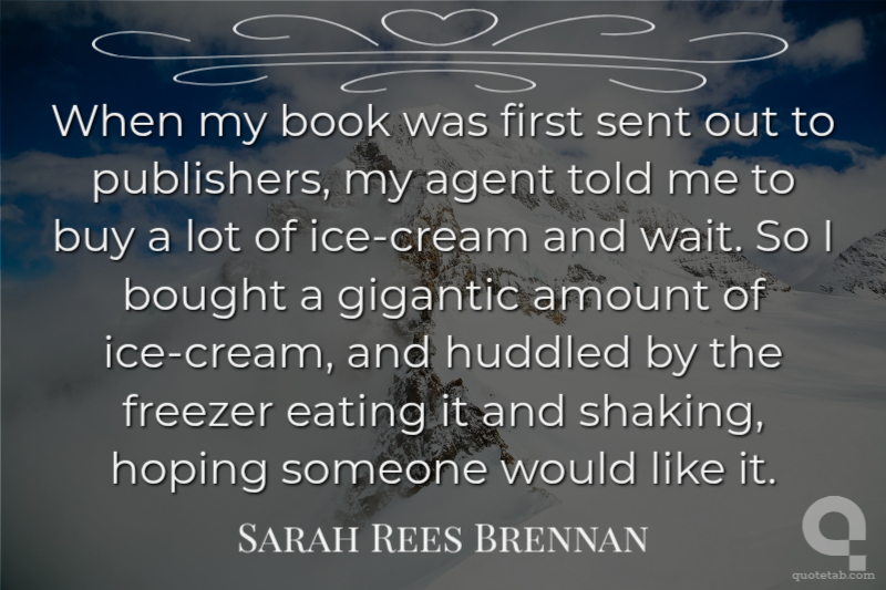 When my book was first sent out to publishers, my agent told me to buy a lot of ice-cream and wait. So I bought a gigantic amount of ice-cream, and huddled by the freezer eating it and shaking, hoping someone would like it.