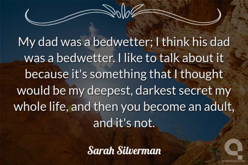 My dad was a bedwetter; I think his dad was a bedwetter. I like to talk about it because it's something that I thought would be my deepest, darkest secret my whole life, and then you become an adult, and it's not.