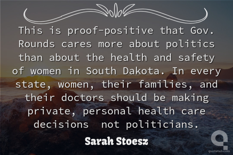 This is proof-positive that Gov. Rounds cares more about politics than about the health and safety of women in South Dakota. In every state, women, their families, and their doctors should be making private, personal health care decisions not politicians.