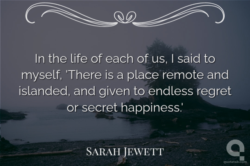 In the life of each of us, I said to myself, 'There is a place remote and islanded, and given to endless regret or secret happiness.'