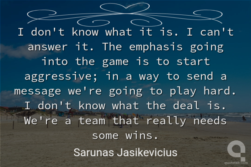 I don't know what it is. I can't answer it. The emphasis going into the game is to start aggressive; in a way to send a message we're going to play hard. I don't know what the deal is. We're a team that really needs some wins.