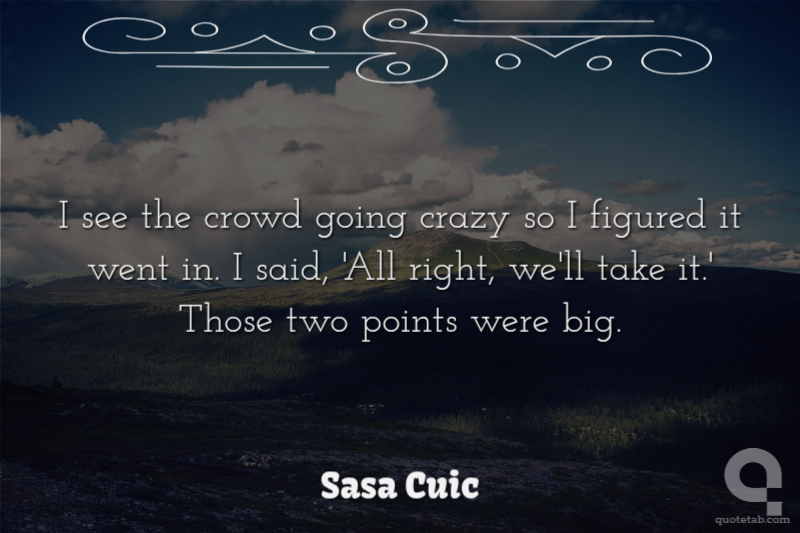 I see the crowd going crazy so I figured it went in. I said, 'All right, we'll take it.' Those two points were big.