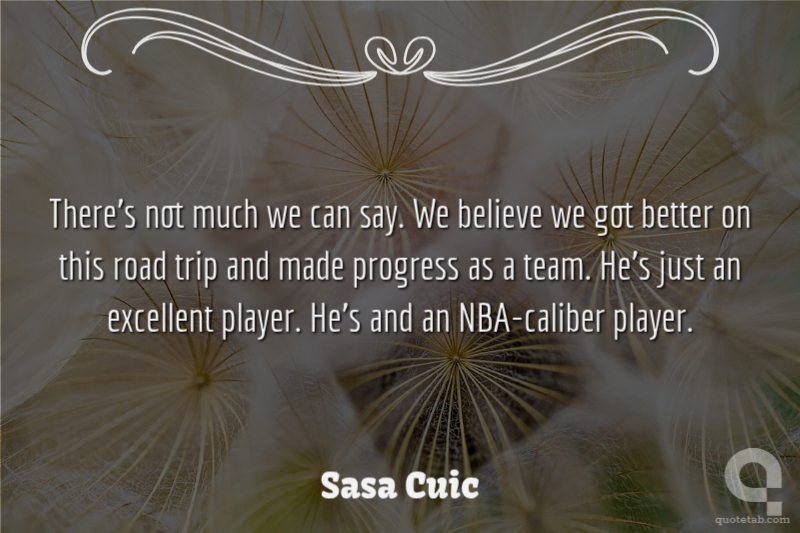 There's not much we can say. We believe we got better on this road trip and made progress as a team. He's just an excellent player. He's and an NBA-caliber player.
