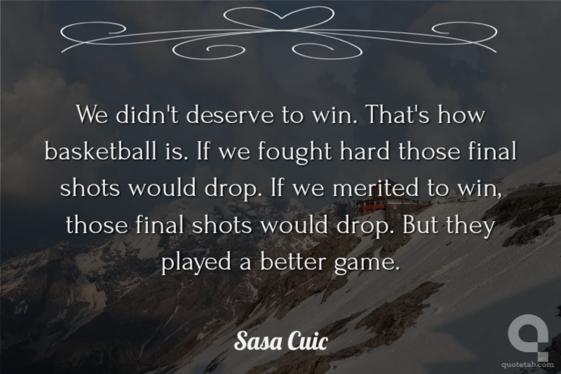 We didn't deserve to win. That's how basketball is. If we fought hard those final shots would drop. If we merited to win, those final shots would drop. But they played a better game.