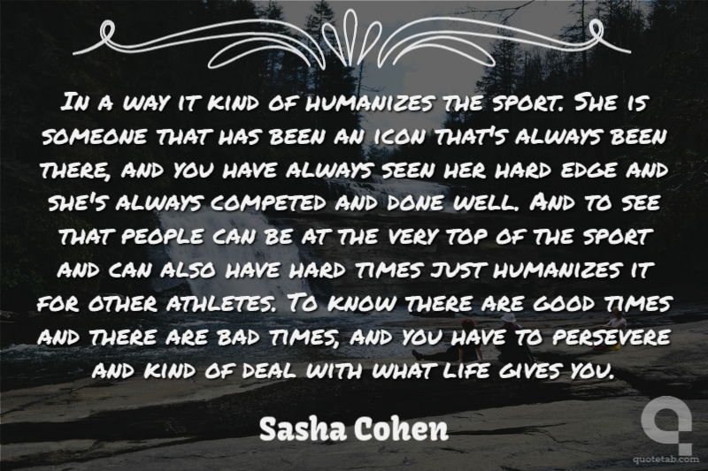 In a way it kind of humanizes the sport. She is someone that has been an icon that's always been there, and you have always seen her hard edge and she's always competed and done well. And to see that people can be at the very top of the sport and can also have hard times just humanizes it for other athletes. To know there are good times and there are bad times, and you have to persevere and kind of deal with what life gives you.