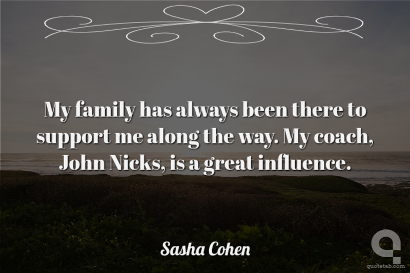 My family has always been there to support me along the way. My coach, John Nicks, is a great influence.