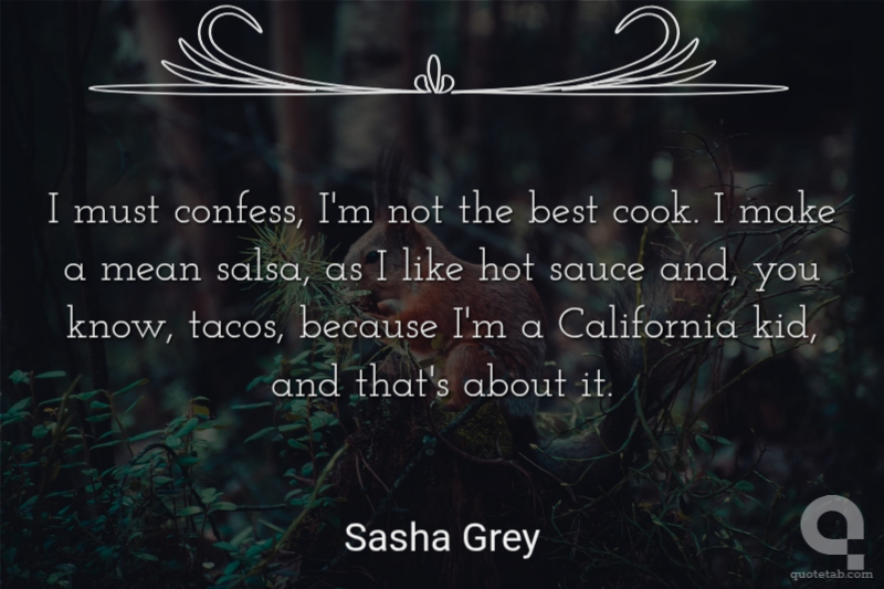 I must confess, I'm not the best cook. I make a mean salsa, as I like hot sauce and, you know, tacos, because I'm a California kid, and that's about it.