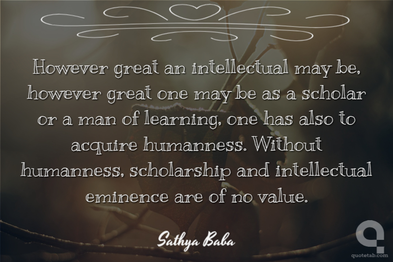 However great an intellectual may be, however great one may be as a scholar or a man of learning, one has also to acquire humanness. Without humanness, scholarship and intellectual eminence are of no value.