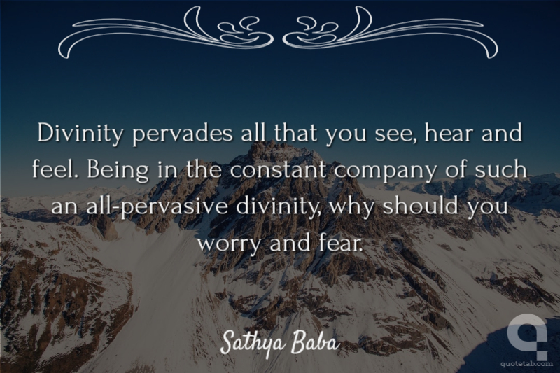 Divinity pervades all that you see, hear and feel. Being in the constant company of such an all-pervasive divinity, why should you worry and fear.