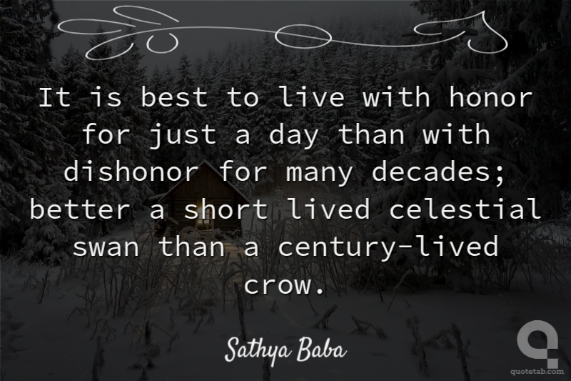 It is best to live with honor for just a day than with dishonor for many decades; better a short lived celestial swan than a century-lived crow.